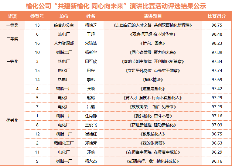 比賽現場,精彩紛呈,《走出自己的人才之路 共創雙百榆化新輝煌》 《雙肩擔理想 奮斗譜華章》 《忙完,回家》……16名選手輪番上臺,以小故事反映大主題,從不同崗位、不同視角,緊緊圍繞“共建新榆化 同心向未來”這一主題,以小見大、以情動人。他們時而鏗鏘有力、激蕩人心,時而溫柔婉約、觸動心靈,用樸實的語言、鮮活的事例和真摯的情感,聲情并茂地講述了“身邊人”在平凡崗位上履職盡責、擔當奉獻的“身邊事”,描繪出一幅幅激情壯闊的畫面、一幕幕感人至深的場面、一幀幀拼搏向上的畫卷,展現了榆化人愛崗敬業、無私奉獻、勇挑重擔、善作善成的良好精神風貌,抒發了對榆化的無限熱愛,深深感染著現場每一位觀眾。