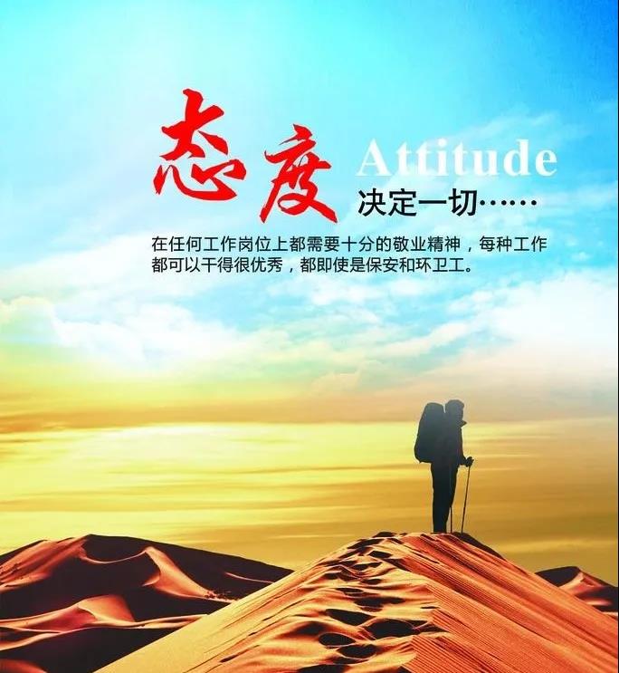 “態度決定一切,細節決定成敗。”態度是什么?細節又是啥?我認為態度就是我們每個人對待每件事情的不同看法。細節則是可能影響事情結果時每一步不起眼的小事。總之一個人的成敗,態度是最重要的一把鑰匙。