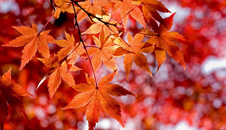 十月是火紅色的。順著輕風,離開油菜田來到一片楓葉林。抬起頭這一片紅、那一片紅,似乎都是它們對我的到來而釋放的熱情,好不熱鬧!伴著風,它們輕輕舞動起來,像是一簇簇燃燒的火焰,想要趨著在這生命的最后時刻拼命的綻放出那屬于自己的最美麗的色彩。我感受到它們的這份狂熱后,摘下一片楓葉細細的欣賞著這生命的顏色。