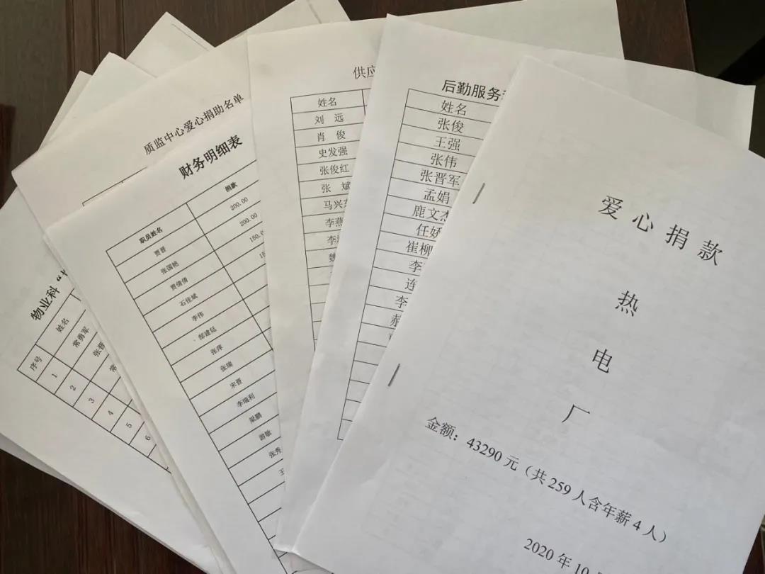同時,我們員工應該積極響應公司的此項募捐政策。近期,我們熱電廠開始了一年一度的募捐活動,人們紛紛捐出工資的一小部分。眾人拾柴火焰高,大家支援解萬難。點滴恩惠匯聚在一起將能幫助困難家庭緩解高昂醫療費用,能讓暗淡的家庭重新迸發燦爛的曙光,讓不幸的家庭變成大幸運。