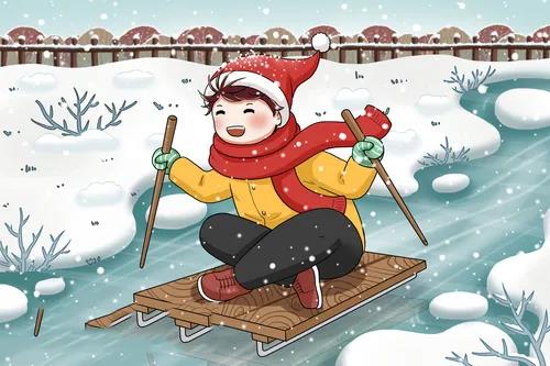 等冬天大凍的時候,村里小河也結了冰。這時就該重型武器——冰船出場了。那時候幾乎是人手一個,中午吃過午飯拖著冰船帶上火柴就都跑到河里滑冰船去了。雖然河里結了冰,但總有地方凍不實,有時候滑著滑著就連人帶冰船滑到冰窟窿里面去了。這個時候帶著的火柴就派上用場了,把濕透的衣服生火烤干才敢回家去呀!