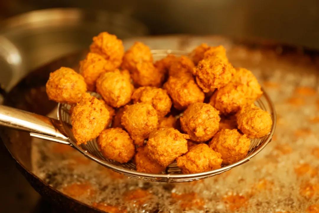 似火焚身披堅甲,滾珠落圓滿珍饈。