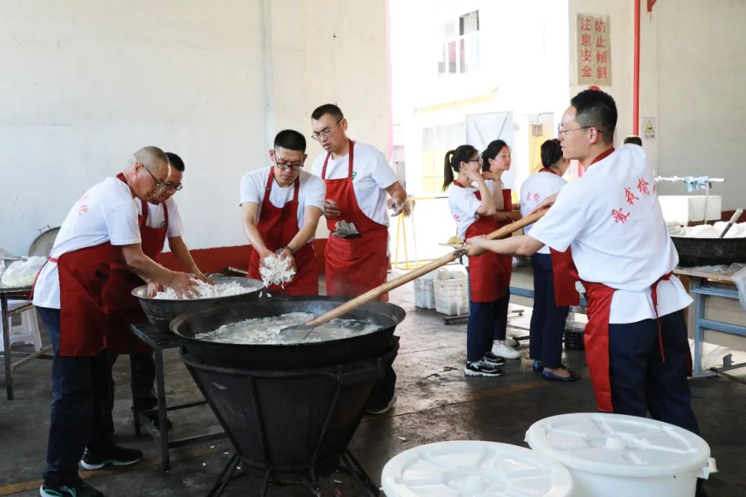 他們,在爐火旁、在面案邊,用心洗菜、用力壓面,精心調配各種小菜,只為能讓辛苦勞作的工友們吃上可口美味的飯菜。他們忘記腰酸背痛,忘記爐火高溫,在柴米油鹽中、在酸甜苦辣中,用心用情干著后勤保障工作,用香甜的西瓜,美味的飯菜為奮戰一線的工友送上了別樣的關懷。