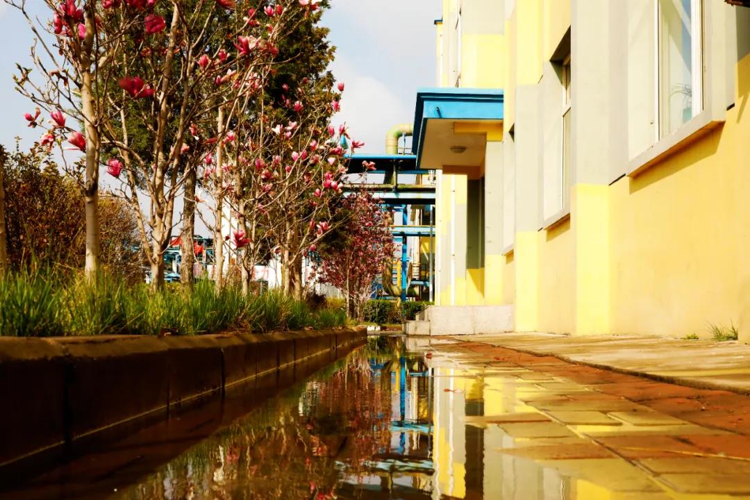 “春風得意馬蹄疾,一日盡看電化廠”,此時正是春回大地,綠滿神州。你看,我們電化廠也不甘示弱,趁著春風十里、桃花盛開,向這美好人間獻禮同慶。首先你看,步入廠區給你的第(一)印象是條條寬闊平坦的大路,干凈整潔,在旁邊雅致路燈的陪襯下,給人一種靜的享受。對,還有花叢為伴,參樹遮陽,好一副美景圖呀。其實當你置身廠區內才會發現不一樣的電化廠……