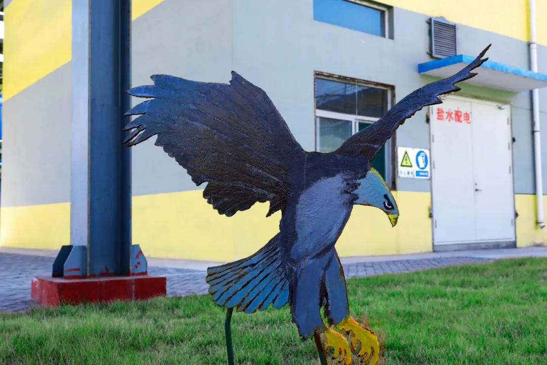 廠區內,凡是有墻壁之處皆有壁畫,畫風各異,內容樸實,有安全警示、禮儀孝道、人文山水……可以說不僅美化了廠區,更是豐富了員工的知識面,起到了很好的熏陶作用。不止如此,我們廠區內凡是路之所及皆有草坪,綠意青蔥,面積不等,草坪上有廢物改造的健身器材、動物雕畫、交通模具……不僅廢物利用,更是烘托著廠區的別樣文化。