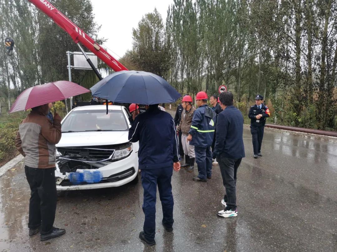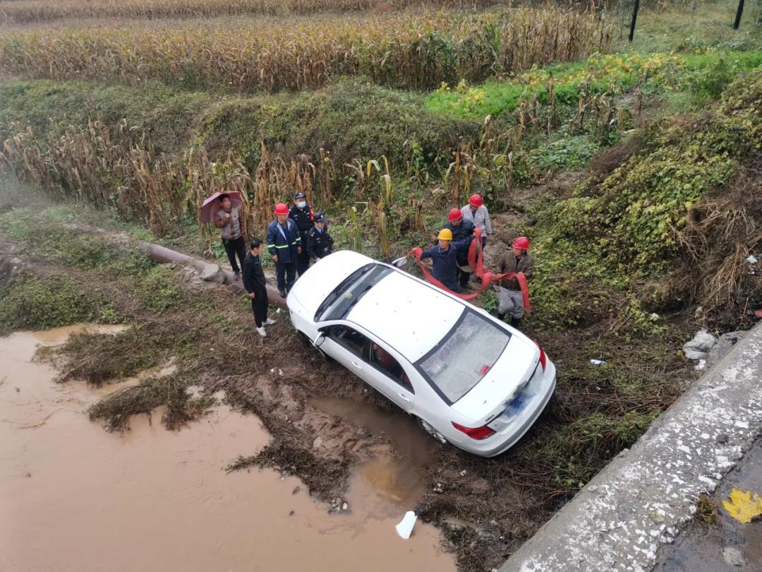 10月5日,滂沱大雨傾盆而下,趕往上大夜的員工苗師傅,在濱河路拐彎時,由于雨天路滑,加上車內視線不好,不慎將車滑落潭村橋下,幸好無人員傷亡。一大早,電化廠領導得知情況后,立即組織救援,馬上聯系吊車司機,組織了檢修車間干部、四位鉗工,拿了兩根吊帶,在最短的時間內趕往事發現場。