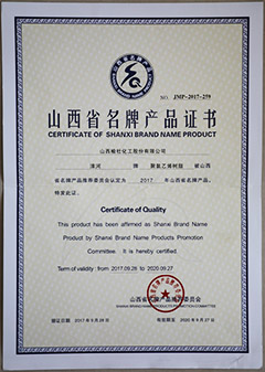 2017山西省名牌產品證書