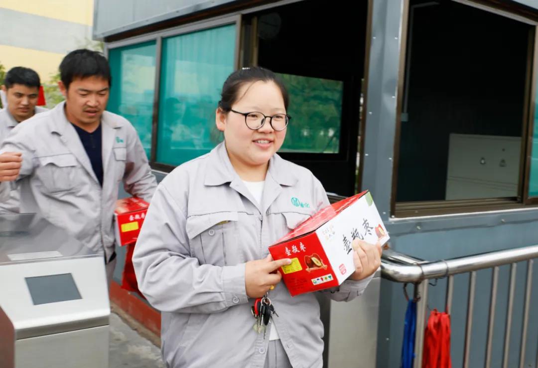 一箱箱承載著公司關懷的大棗傳遞到員工手中,代表著公司向每一位員工及員工家屬送去的真摯問候和祝福,發放現場洋溢著一片喜慶和諧的氛圍。
