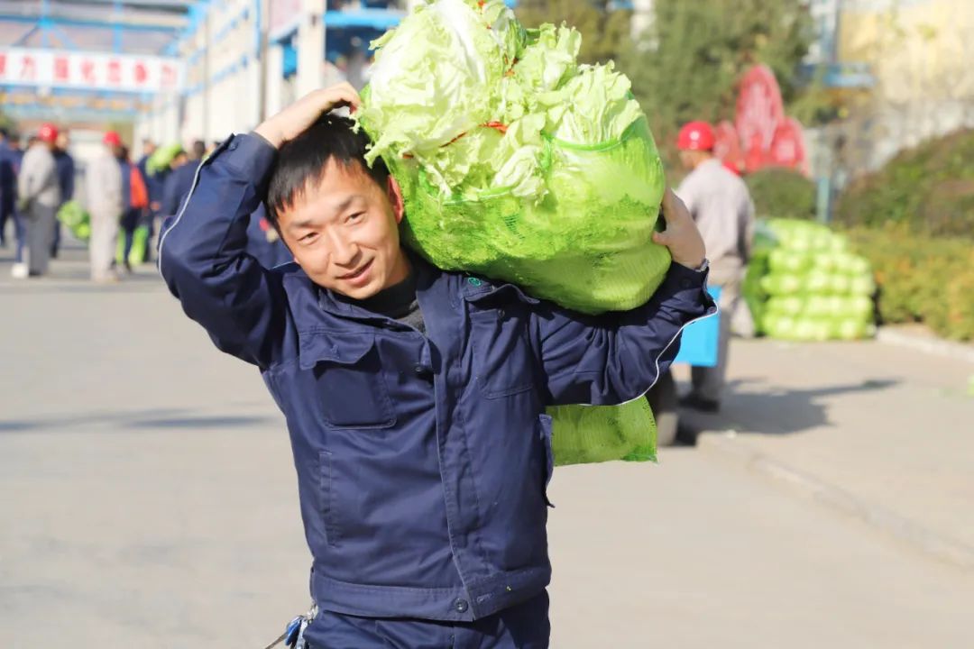 在發放現場,隨處可見你來我往、手捧肩扛的情景,洋溢著一片溫馨和諧的氛圍,沉甸甸的福利品捧在手里,暖在心里,更加堅定了大家立足本職崗位,創造更好業績的信心和決心。員工們紛紛表示:“冬天家里放些大白菜,就覺得心里踏實,可以炒著吃、蒸包子、做餃子都不錯呢。”