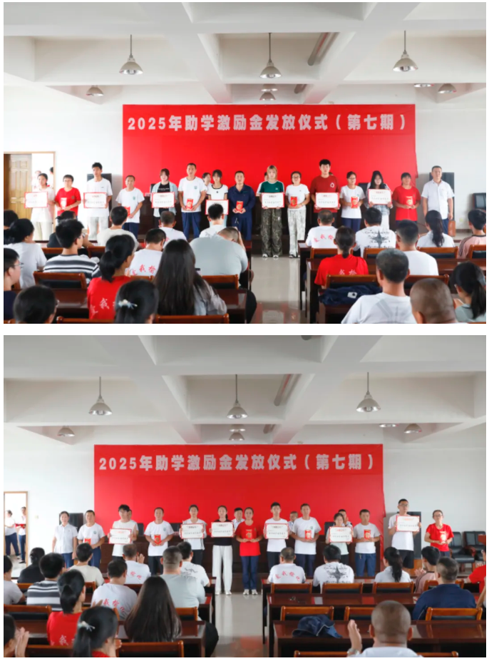 在激昂的樂曲和全場熱烈的掌聲中,備受期待的助學激勵金頒發環節正式開始。公司領導楊柳青、任開宇、張國艷、劉宇光、王利軍分五組,依次為李晉杰、趙雅軒、馮冠睿、楊鑫禹等29名優秀學子及其家長頒發了承載著殷切期望的激勵金。截至本屆,這項暖心工程已累計資助職工子女69人,發放總額高達39萬元,一串串數字背后,是公司數年如一日的堅持與擔當,深刻詮釋了企業發展依靠職工、發展成果惠及職工的理念。