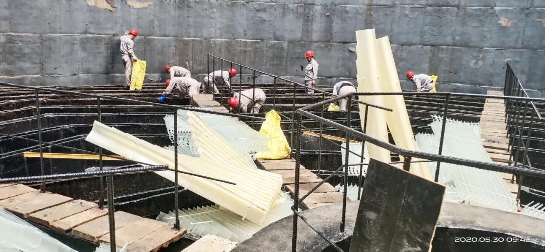 熱電廠副廠長宋強組織運行各工段負責人對現有工藝管道圖紙進行了會審,通過多年經驗對圖紙中存在的一些問題展開了分析討論,形成統一意見,把一些后期施工中會遇到的問題提早解決;安排專人監督涼水塔填料、收水器、噴頭的安裝施工。另外,組織運行員工利用副班時間,對涼水塔施工完畢的均水槽進行了檢查、清理,嚴格按照施工要求抓細節、抓質量,為后期調試投產保駕護航!
