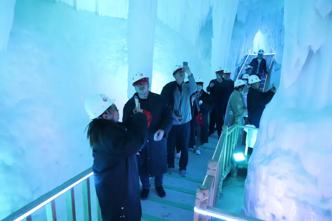 過了橋,大家稍做休息,進入了萬年冰洞群,洞內晶瑩剔透,寒氣逼人。據專家考證,云丘山冰洞形成于第四季冰川期,距今已有300多萬年,它的規模在世界范圍內都是極為罕見的自然景觀。大家看著冰洞內諸多的冰筍、冰柱、冰錐、冰葡萄,不禁贊嘆冰洞景色美輪美奐,猶如仙境。