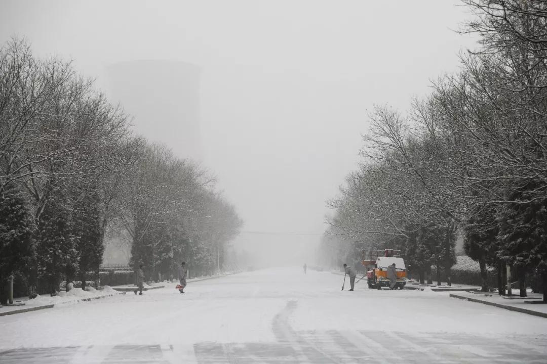 榆社今天大范圍出現降溫降雪天氣,部分路段出現積雪結冰現象。為確保公司員工、學校學生、榆社老百姓出行安全,凌晨7點,榆化公司保衛部組織專人前往新建路、迎春路、濱河路、東大街、鳳臺路、文峰街等路段撒布融雪劑,進行道路融雪。(鄭璇)