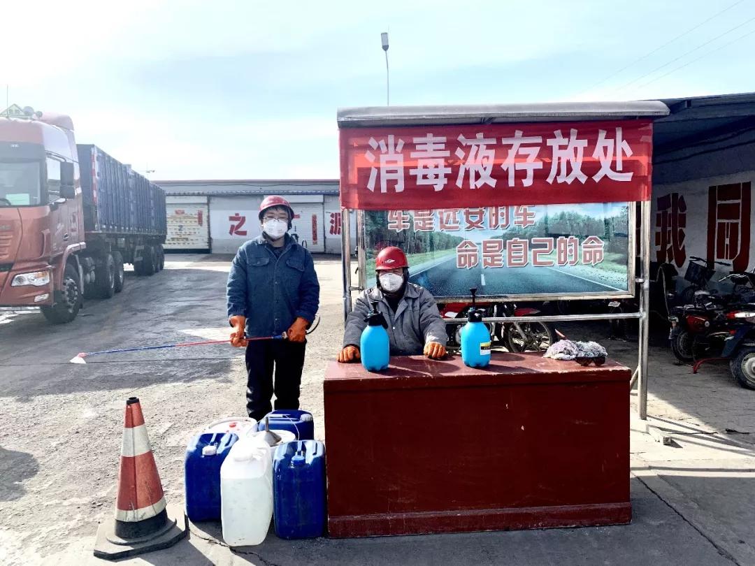 公司大門處設立防疫監測消毒點,配備兩名消毒人員,對每日進出車輛進行消毒,對上班及來訪人員進行體溫測量并登記。并安排管理干部進行監督檢查,保證每條記錄都準確,不漏一輛車、不漏一個人。