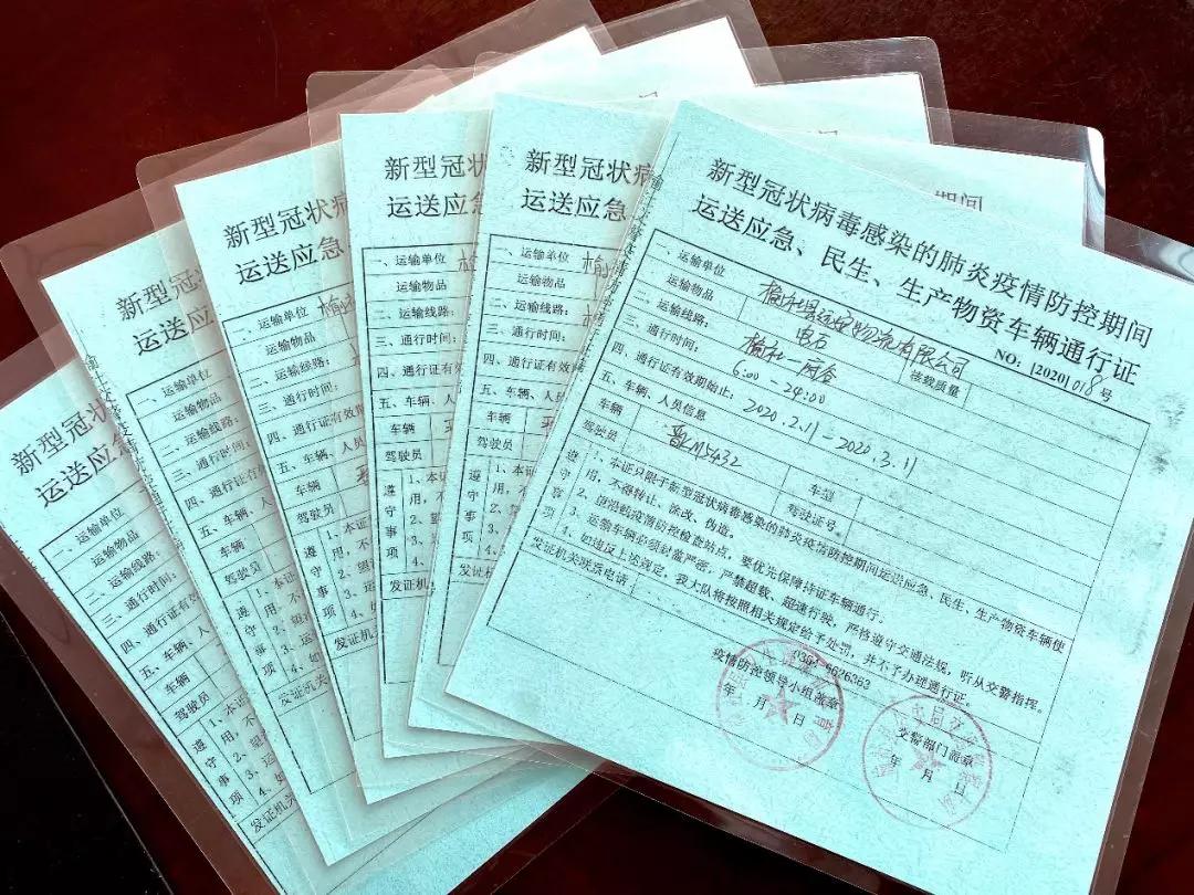 (辦理的通行證拿到后,公司員工加班加點,將70輛車的通行證信息完成錄入并塑封,保證第二天正常出車。)
