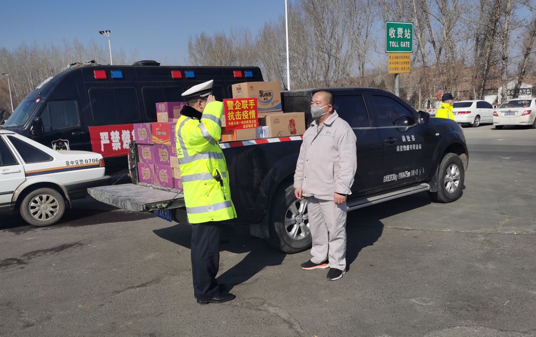 (防疫一線的交警同志對我公司捐贈物資致以深深的敬意)