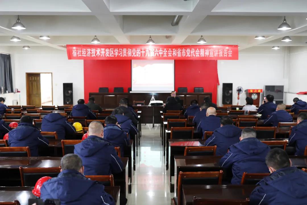 12月31日,榆社經濟技術開發區組織的學習貫徹黨的十九屆六中全會和省市黨代會精神宣講報告會在我公司五樓會議室舉行。宣講會由縣委黨校常務副校長鹿小剛宣講。開發區黨員干部、非公黨組織相關人員參加。公司100余名黨員聽取宣講報告。