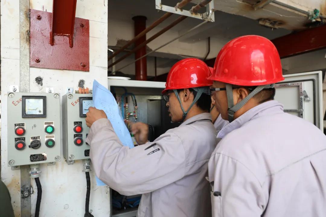 熱電廠檢修人員正在檢查凝結泵電氣柜線路