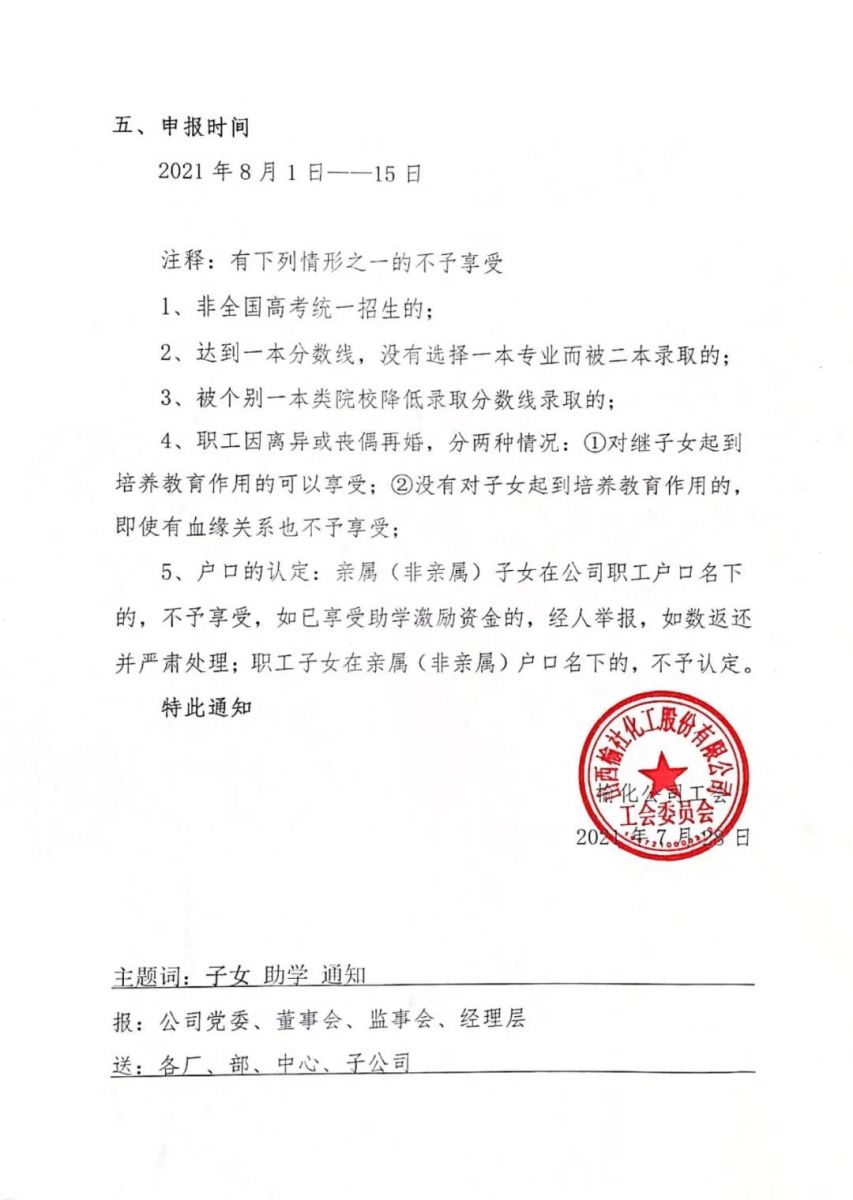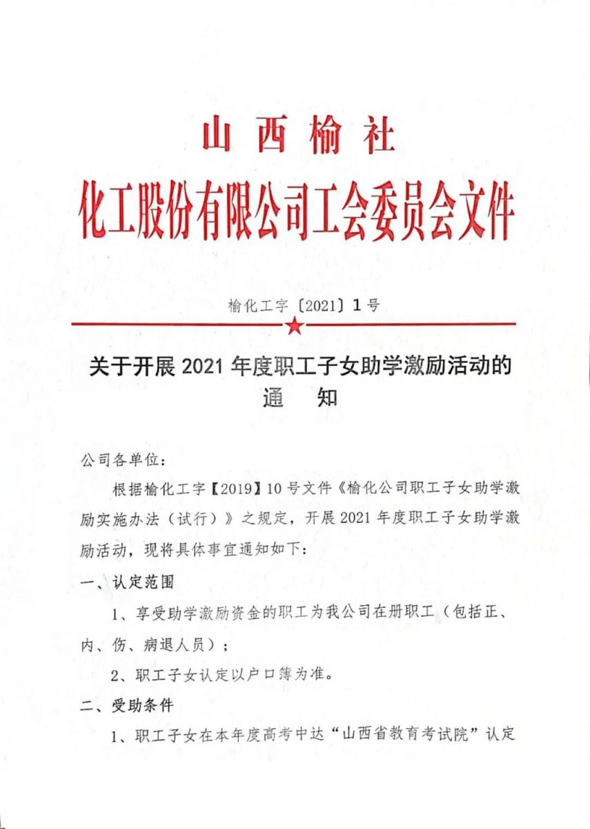 關于開展2021年度職工子女助學激勵活動的通知