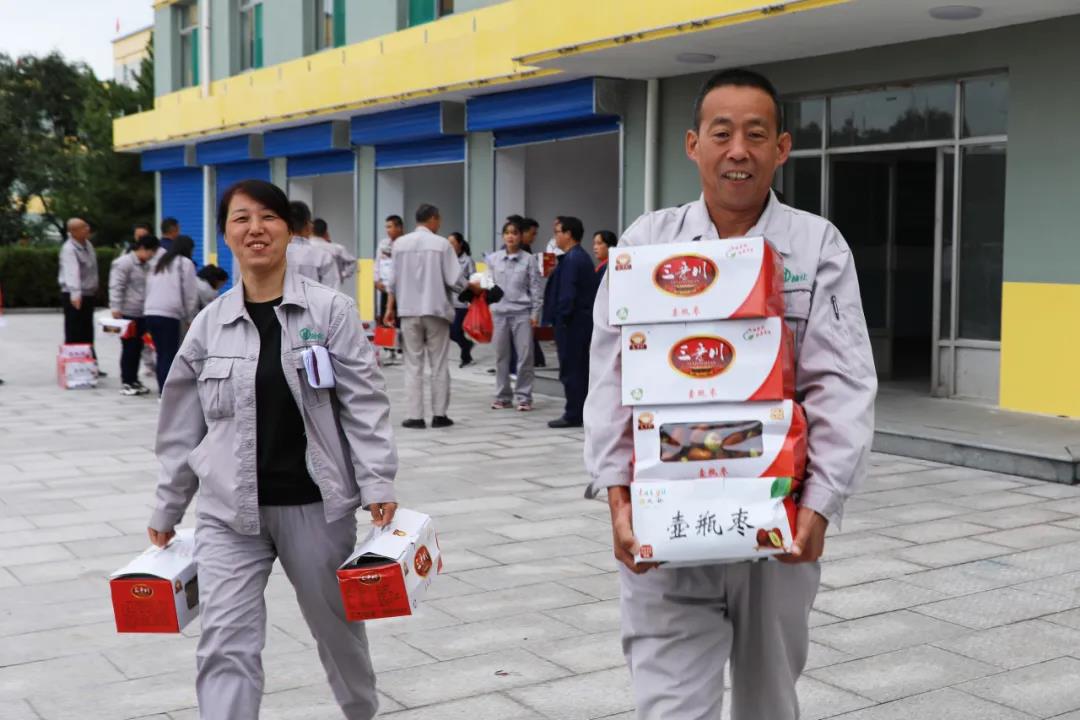 9月25日,月餅的香甜還留在唇齒間,公司就又為全體員工發放了太谷壺瓶脆棗。甜上加甜,甜進心間,讓每一位員工再一次感受到作為一名榆化人的幸福與自豪。榆化給員工發放的福利不僅在節日,更在點點滴滴的日常生活里。