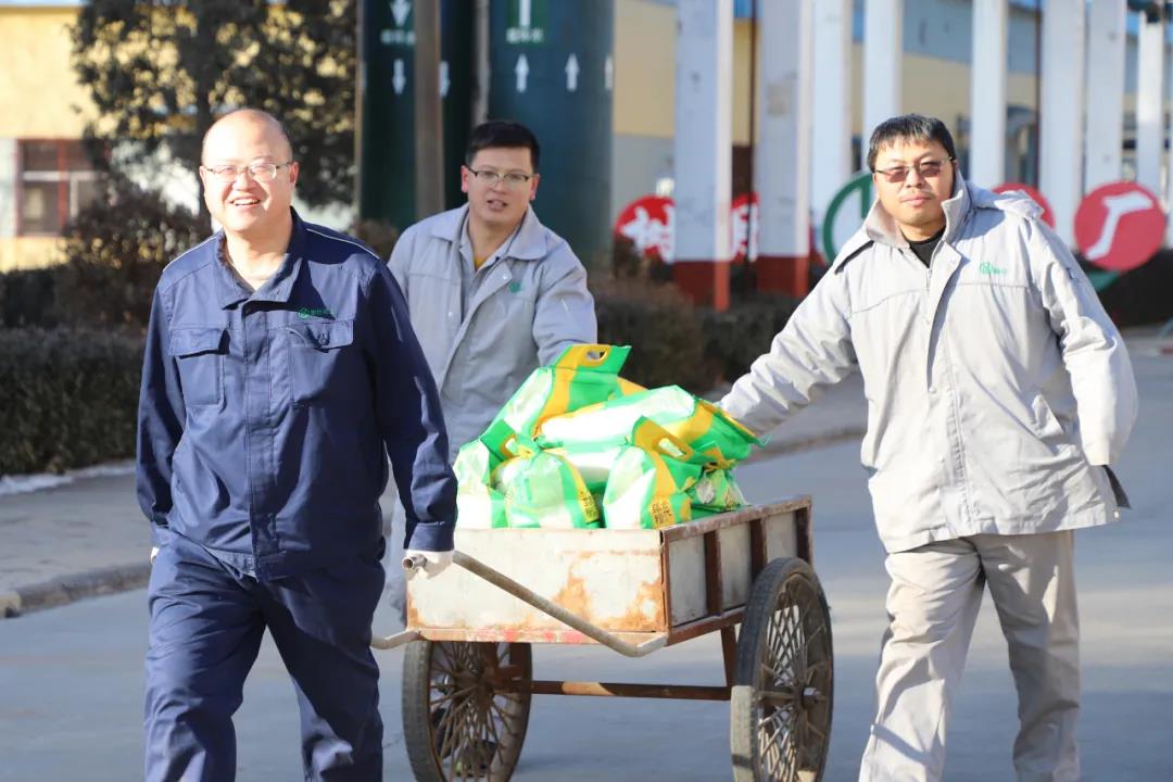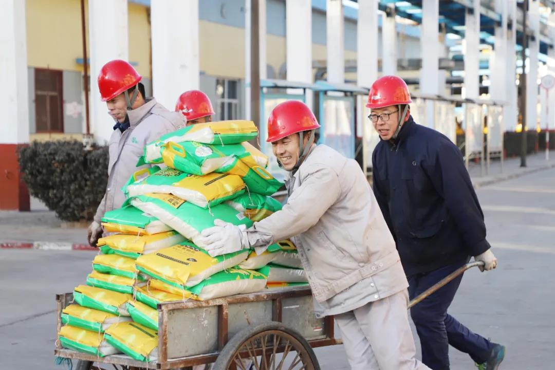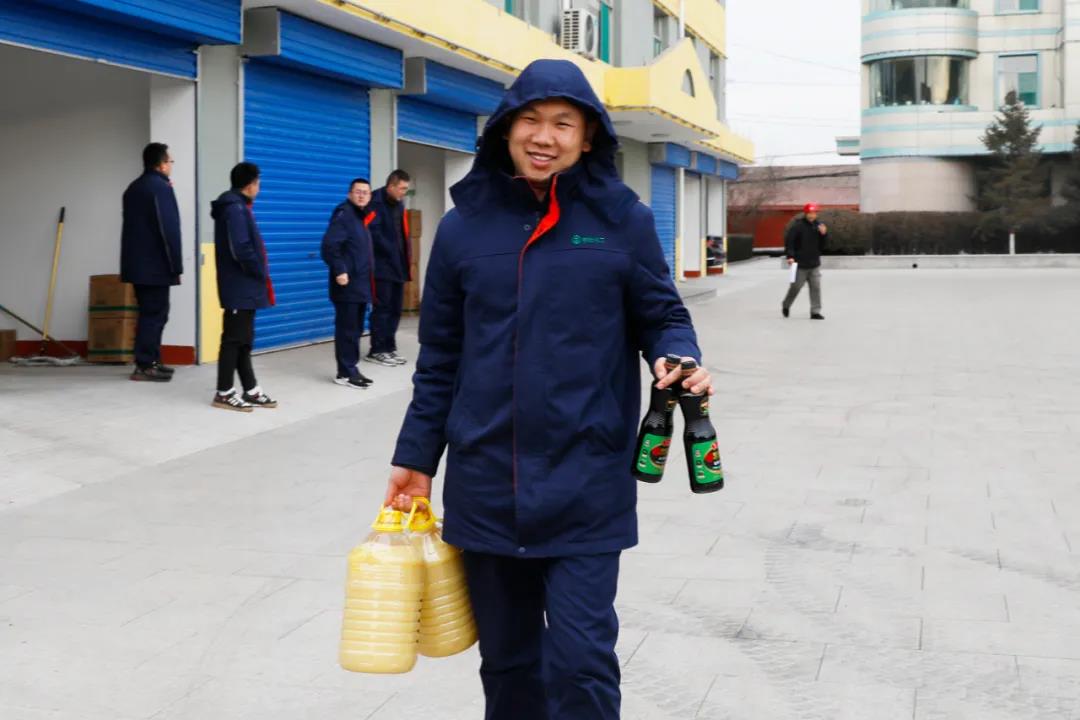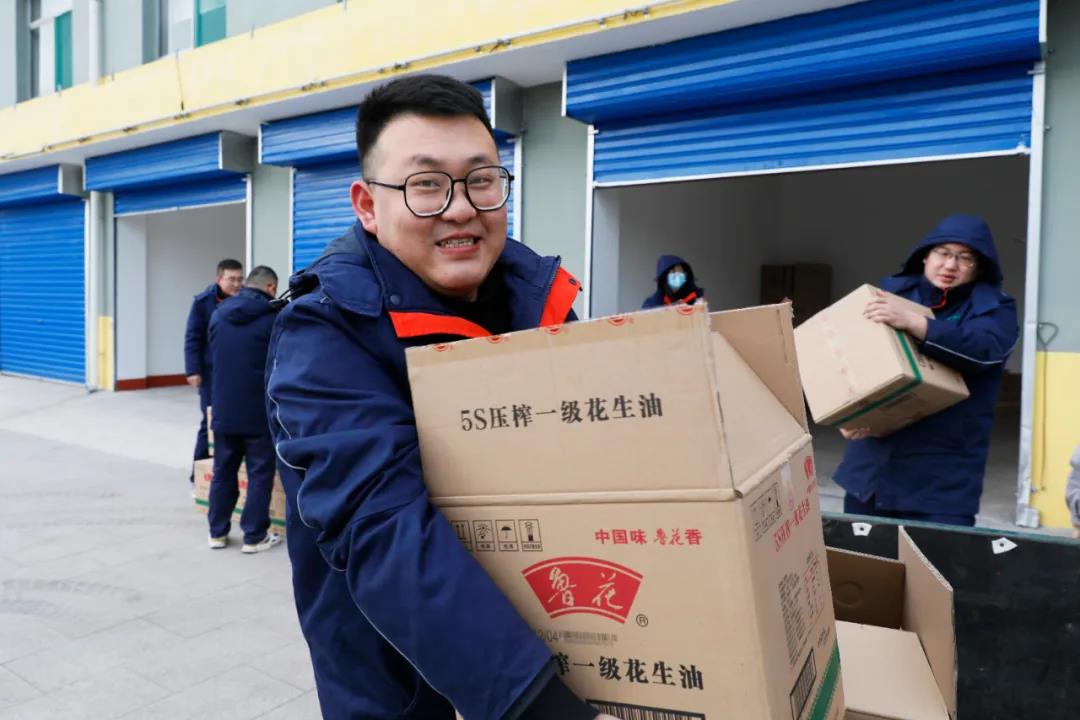 歲末甫至,年味漸濃。1月11日上午,一輛輛滿載著溫暖和關懷的福利貨車款款駛來,為2800多名員工送來了春節福利大禮包。一袋袋優質的五常大米、河套白面,一箱箱魯花花生油、魯花全黑豆醬油整齊地擺放到了各個分廠。各廠員工井井有條地排隊領取福利,幸福的笑容洋溢臉上,溫馨祥和的氛圍漫過了冬日的嚴寒。