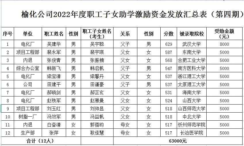 本次共向12名優秀職工子女發放助學激勵資金63000元。