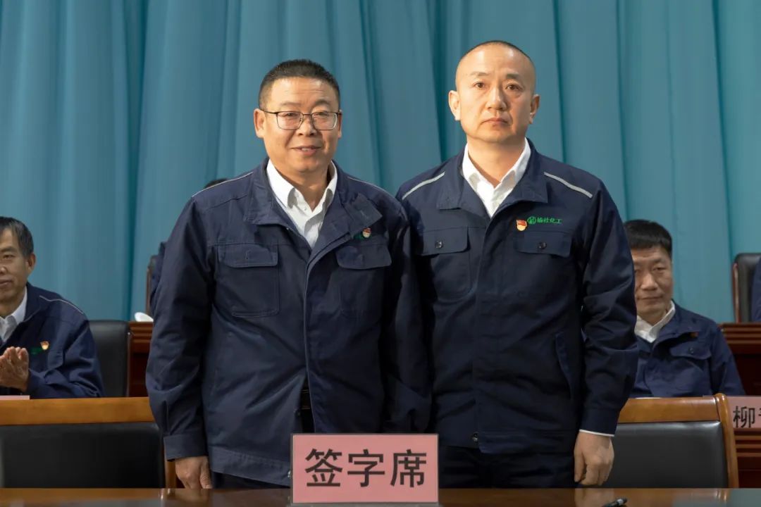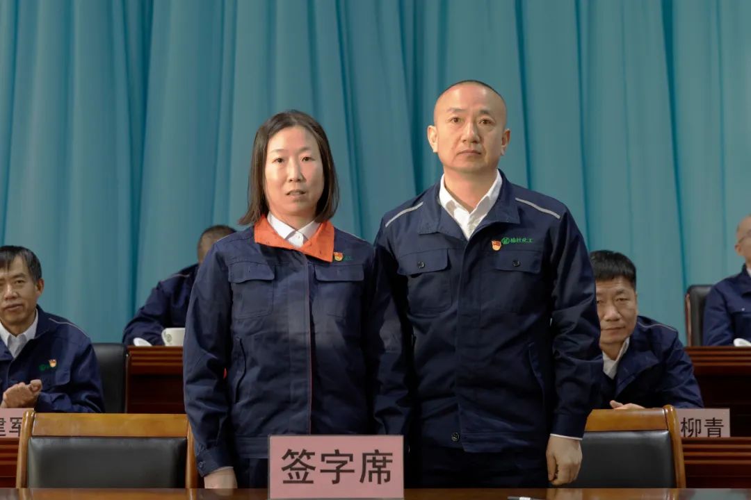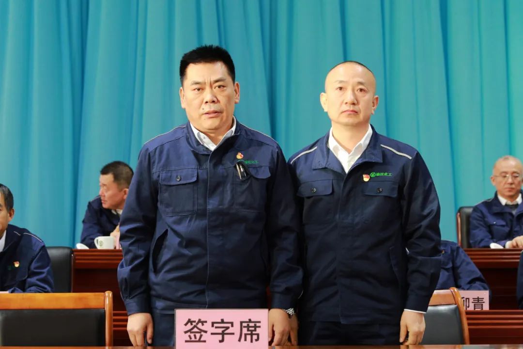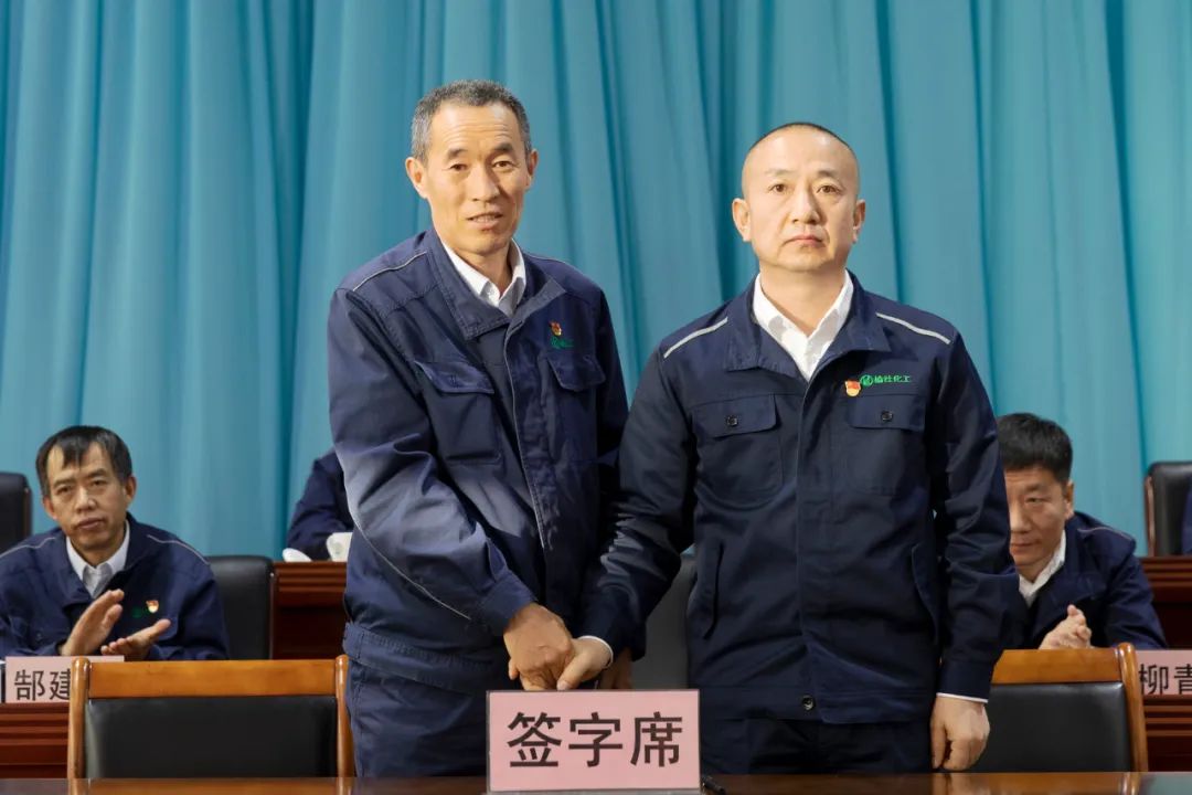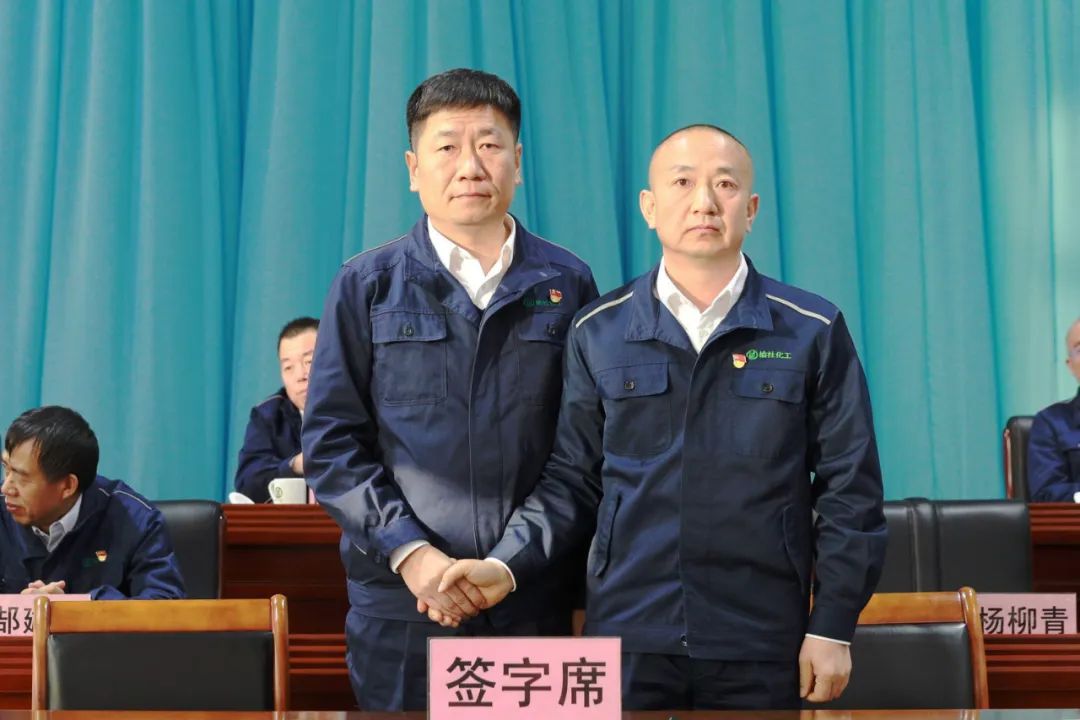 公司黨委書記、董事長劉俊分別與總經理、總工程師、財務總監、人力資源總監、遠安物流有限公司法人代表、榆化精細化法人代表簽訂2023年度《工作目標責任書》和《安全、消防、環保工作目標責任書》