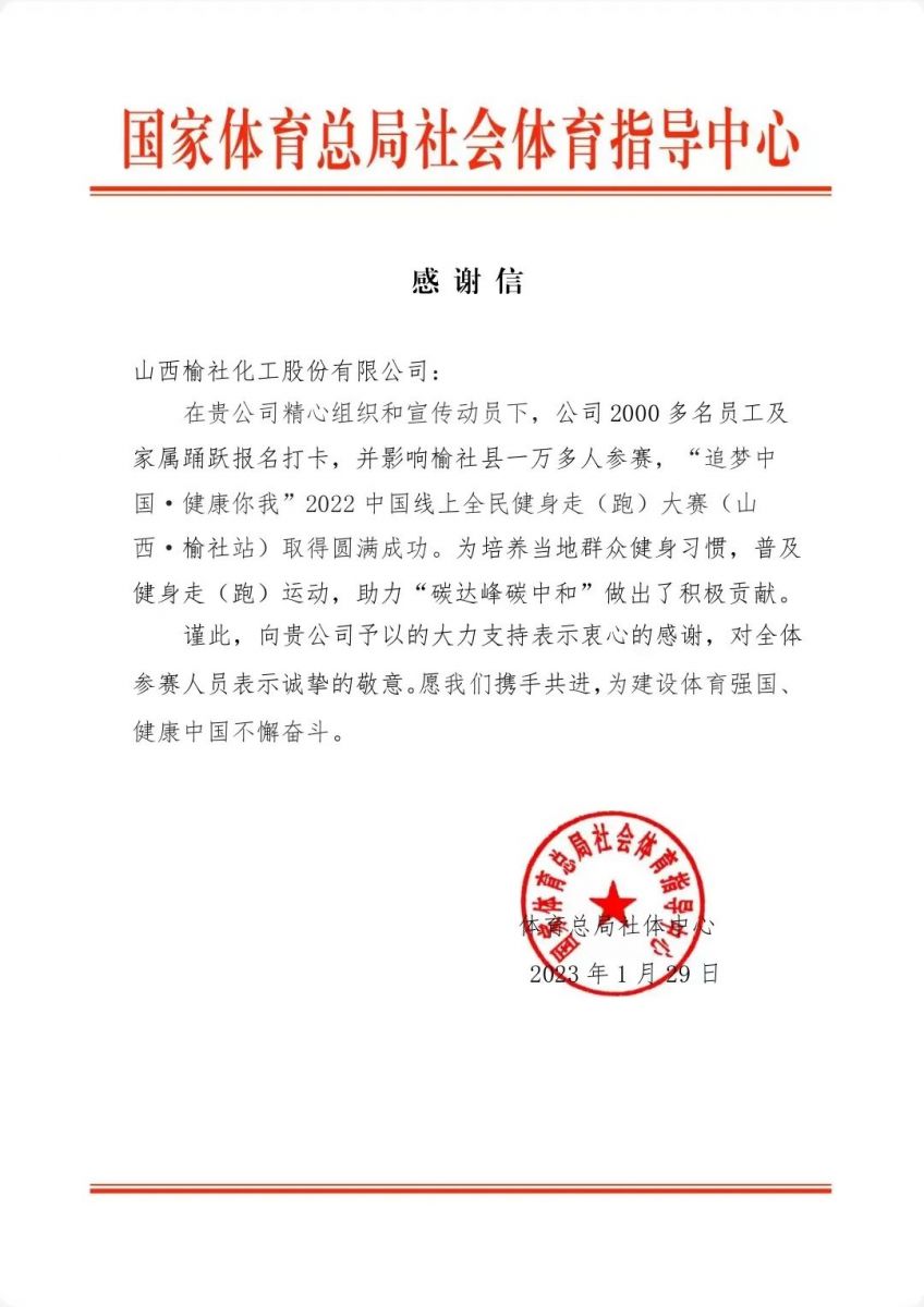 這封帶著溫度的感謝信,是對健康榆化建設的肯定,也是對榆化人健康生活的點贊。近年來,公司積極響應國家全民健身號召,修繕職工籃球場、羽毛球場地,新建職工健身館等,為員工提供良好的運動健身條件;舉辦籃球賽、拔河賽等賽事,組織榆化拔河隊參加省、市、縣拔河爭霸賽,并取得優異成績;開展全員體能測試、越野達標、健身達標等活動,促進員工關注體重指數、血壓、心率等身體指標,引導員工培養健康的生活方式,為企業文化注入健康、文明、自律的新內涵。健康榆化為榆化人的幸福“加碼”。