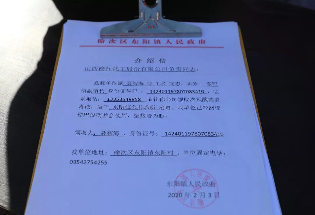 領取時,分廠人員把次氯酸鈉使用說明書發放到領取人員手中,并要求他們提供單位介紹信,簽字確認。