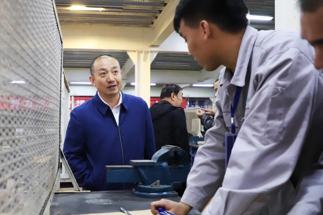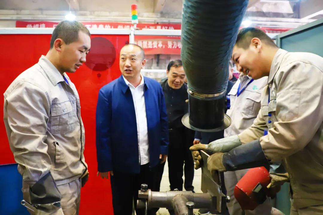 董事長一行參觀了長治技師學院管道與制暖、焊接、鉗工、鉚工等工種實訓現場,查看了不同工種學員作品,對長治技師學院的教學環境、教育師資及教學質量表示認可。