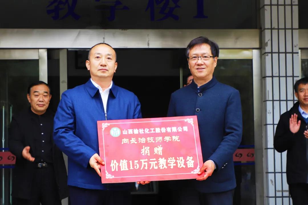 隨后,校企雙方領導共同出席了在長治技師學院主校區隆重舉行的“榆化公司向長治技師學院捐贈設備儀式”。