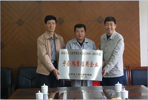 儀式上,公司副總經理馮效恩詳細介紹了公司近年來的生產經營、市場銷售等情況。李局長對公司近年來在合同管理、合同履約、保障債權人權益、依法納稅等方面做出的突出貢獻給予了高度肯定。并希望公司要珍惜榮譽,再接再厲,充分發揚新晉商精神,努力提高誠信經營意識和管理水平,為推動地方經濟發展發揮模范帶頭作用。