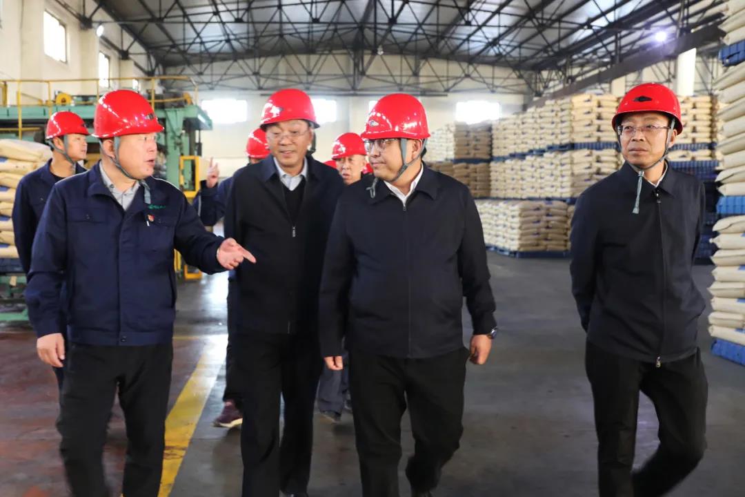10月26日,省工信廳副廳長張占祥,市工信局二級調研員石志保一行到我公司調研。榆社縣委副書記、縣長魏棟,副縣長武春林,開發區黨工委委員、管委會副主任馬駿,工信局局長張建,公司總經理陳波,總工程師田建平陪同調研。