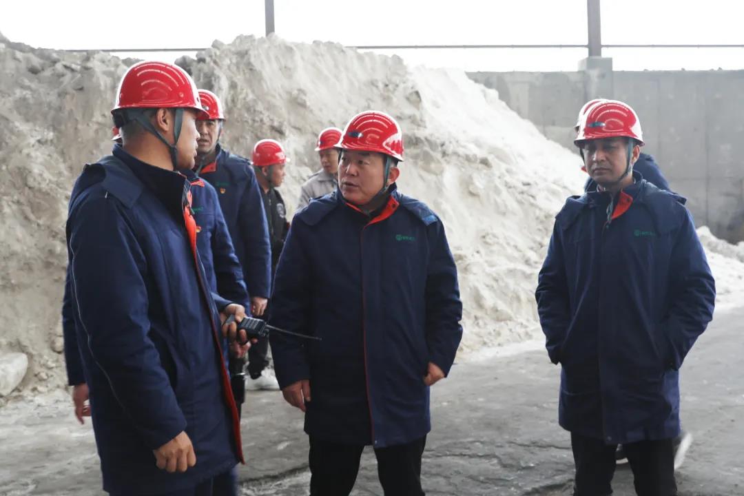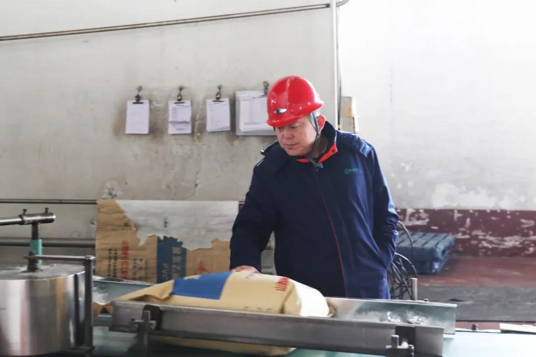 陳波一行深入裝置區、包裝車間、原料庫房等地,仔細檢查了設備運行情況,了解了原料、產品庫存情況,并就春節期間安全穩定生產的保障工作與分廠干部進行了現場交流。
