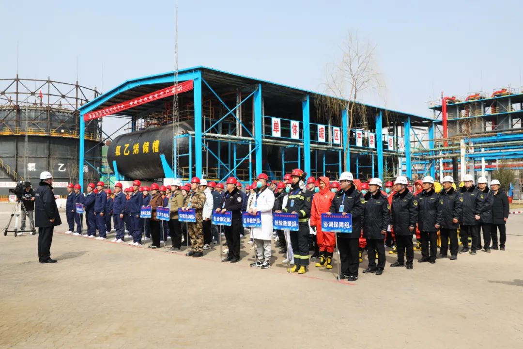 演練模擬氯乙烯單體儲槽排污閥前短管破裂,發生氯乙烯泄漏及人員中毒事故,根據事故情況逐級上報,公司、縣、市分別啟動應急響應,各應急小組根據職責分工完成事故研判、現場救援、現場隔離、搶救中毒人員、環境監測、搶修設備及新聞報道等應急處置工作。演練過程嚴格執行應急預案,從應急響應到現場處置結束,各部門協調聯動,各小組任務分工明確、工作人員配合默契,處理科學規范,30分鐘內就完成了應急處理,達到了預期效果,有效檢驗了應急處置能力。
