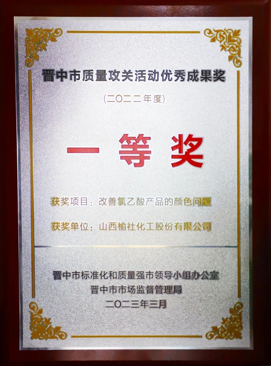 近日,晉中市2022年度質量攻關活動優秀成果名單揭曉,公司“改善氯乙酸產品的顏色問題”質量攻關項目榮獲晉中市質量攻關優秀成果獎一等獎優異成績,公司被授予“質量攻關先進企業”榮譽稱號。自2018年開展質量攻關以來,公司申報項目已連續四年斬獲一等獎的佳績,項目的實施取得了顯著成效,有力地推動了產品質量的不斷提升。