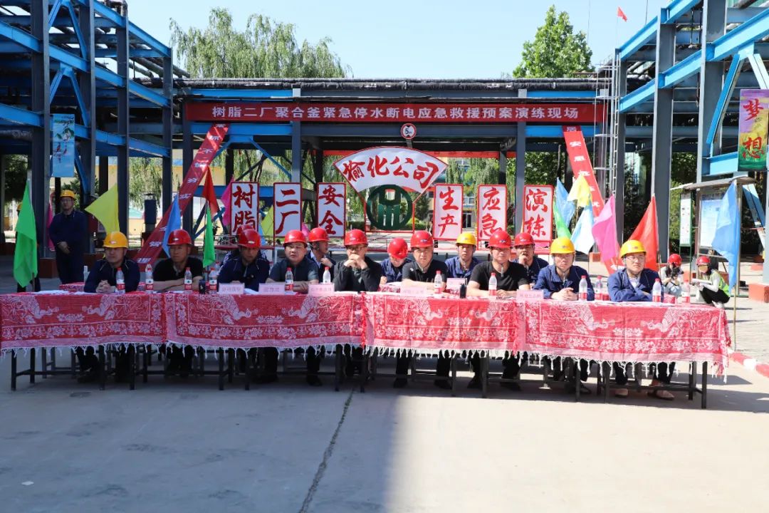 演練模擬樹脂二廠在聚合釜緊急停水斷電超溫超壓導致法蘭泄露后,演練指揮部現場啟動緊急救援預案,在崗人員發現問題后迅速上報當班運行班長,由班長上報調度人員和總指揮,由總指揮統一調度,啟動應急響應機制、進行事故現場管控、聯系各部門趕赴現場展開救援工作、消防滅火、事故現場清理。最終,在各應急處置小組的相互配合下,科學有序高效的完成應急演練,取得了預期效果。