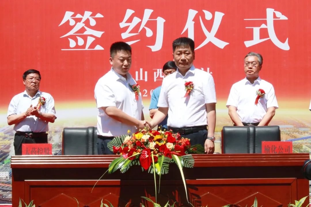 晴日暖風生麥氣,綠陰幽草勝花時。6月21日,榆化公司18米大路旌旗飄揚,熱鬧非凡。山西榆社化工股份有限公司·太藥控股(山西)集團有限公司原料藥戰略合作項目勝利簽約,邁出了向大健康醫藥產業進軍的高質量轉型步伐。