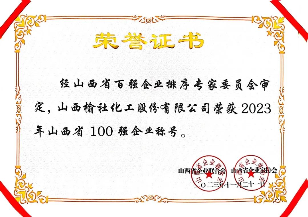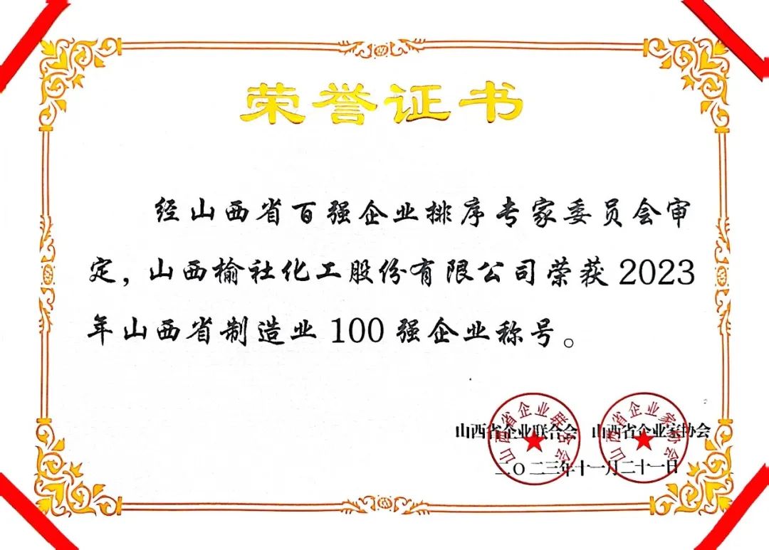 11月21日,山西省企業聯合會、山西省企業家協會在太原組織召開了2023山西100強企業高峰論壇,論壇發布了2023山西企業100強、制造業企業100強、服務業企業100強等排行榜,同時發布《山西企業100強(年度)發展報告》。公司榮列2023年山西省100強企業第79位,2023年山西省制造業100強企業第60位。