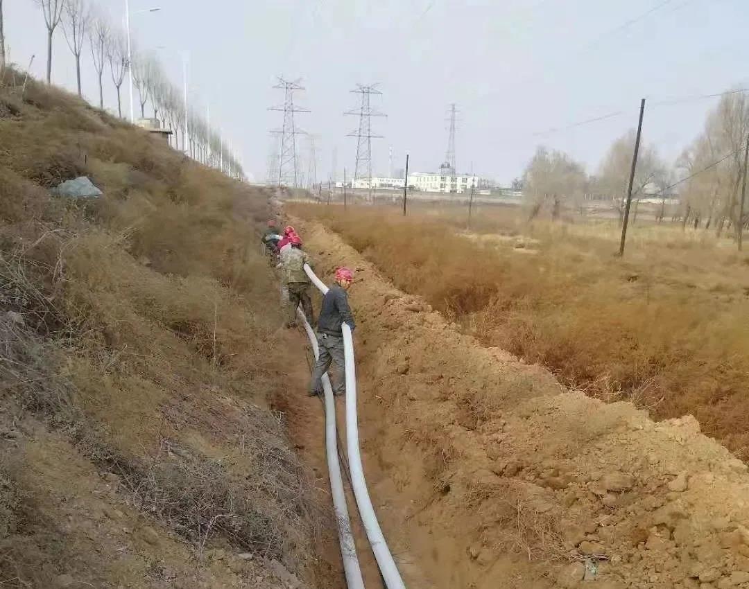 安全是工作順利進行的必要條件,樹脂二廠更是以“安全第(一)”作為工作標準。廠部領導首先對本次作業進行安全部署,分廠干部一半留守指揮生產,一半對本次作業進行現場盯守,保證作業順利進行。首先進行簡單分工:女員工負責將電纜從廠污水工段拉至廠區西南角圍墻邊,男員工負責從圍墻外拉至縣污水廠,總長度約為1000多米。領導緊密聯系,精準指揮,30多個女員工“巾幗不讓須眉”,3人一組以5米為間距排開,在“一、二”口號的指揮下,目標一致,在她們的助力下,經過3個多小時的協同配合將電纜線送了出去。男同志更是干勁十足,他們的工作量大,不僅要將電纜順利拉至縣污水處理廠,還要將電纜與塑料總管一起鋪放進事先挖好的區域內,完成從樹脂二廠到縣污水廠的鋪設工作。盡管工作量大,但是他們毫無怨言,齊心協力,鼓足干勁,干得熱火朝天,干得有質有量,干得汗珠子直往下淌!因為他們有很強團隊的精神,他們相信“干就完了”。