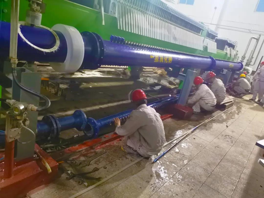 檢修中,干部員工認真細致,各負其責做好檢修工作。每一項作業都進行票證辦理,落實安全措施和進行培訓教育。一整套工作包括:停槽、置換、降溫、拆槽、吊裝、打磨、吹除、貼墊、涂硅膠、檢查、裝槽、試漏、清洗(1)、檢查、貼膜、氣密性試驗、清洗(2)、充液、升溫、升電流等。分管領導現場協調組織,盯守每項作業過程、嚴把質量關,并和員工一起完成任務。干部員工團結一心,齊心協力,發揚榆化人吃苦耐勞的精神,抓時間,搶進度,在保證安全的前提下,保質保量完成檢修任務。