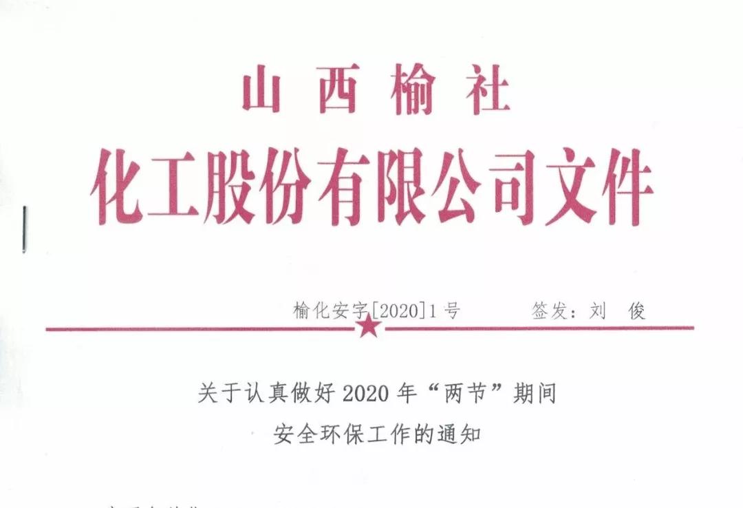 2020年元旦、春節即將來臨,為貫徹落實全國、全省安全生產工作會議精神,切實加強今冬明春安全生產工作,確保“兩節”期間生產安全及職工生活穩定,公司特下發“兩節”期間認真做好安全環保工作的通知。